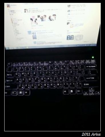 傳說中的背光鍵盤,這是關起燈後會看到的樣子..用處是 : 當半夜在關燈的客廳看PPS時..不用開燈就可以搜尋下部戲呀!!哈哈
